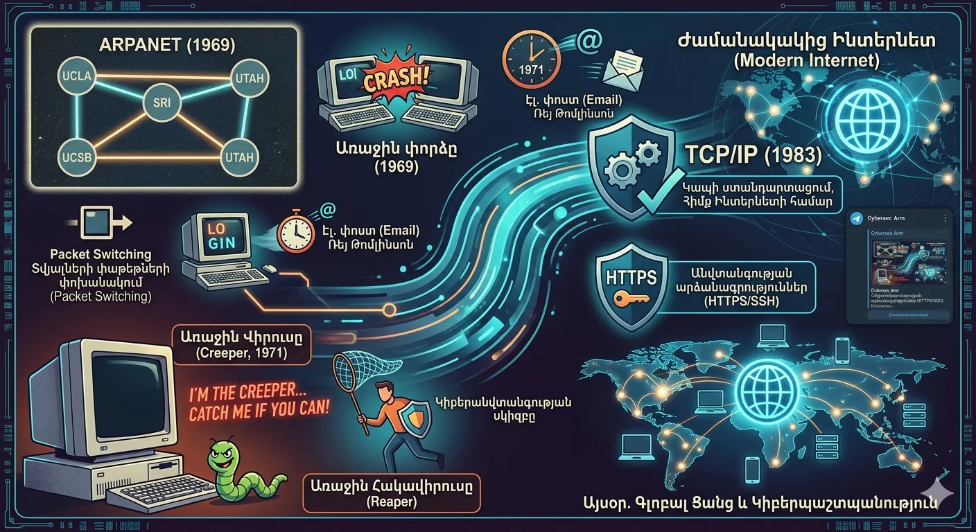ARPANET. Ինտերնետի ԴՆԹ-ն և Ցանցային էվոլյուցիան, առաջին համակարգչային վիրուս։